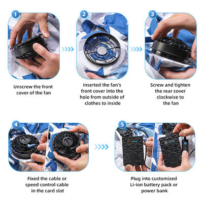 - Prossimo con il fan smontabile che muove l'aria fresca lungo la schiena e la spalla, il sudore evapora istantaneamente che vi incita a ritenere raffreddantesi nel giorno caldo. Potete ritenere molto comodo sul lavoro, evitare la sudorazione ed il colpo di calore pesanti. Con il bottone INSERITA/DISINSERITA sul petto del rivestimento, potete girare facilmente il riscaldamento sul riscaldamento del cambiamento innestate il giro che riscalda fuori appena premendolo.